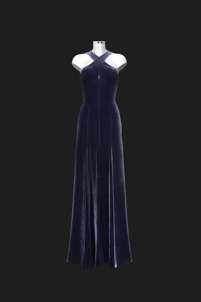 Abendkleid aus rauchblauem Seiden-Viscose-Samt, Anfertigung nach Maß, div. Farben