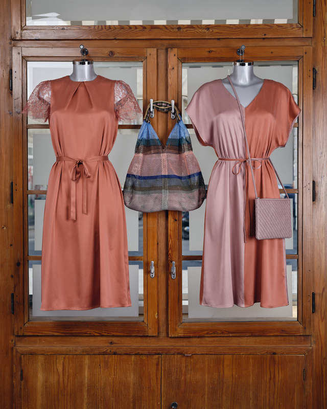 Seidenkleid aus Sandwashed Silk in rosenholz & rosé mit Bindegürtel