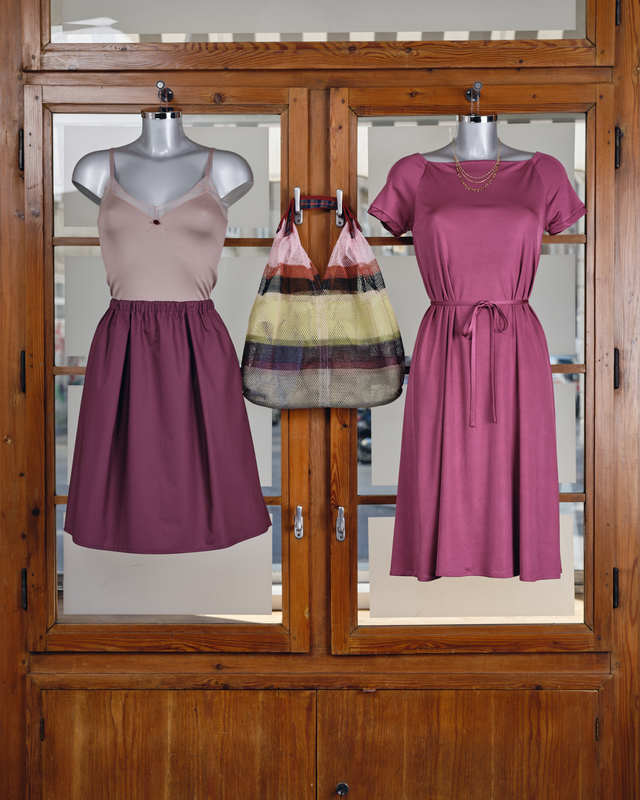 A-Rock aus BW-Popeline in aubergine, mit Bundfalten und Taschen