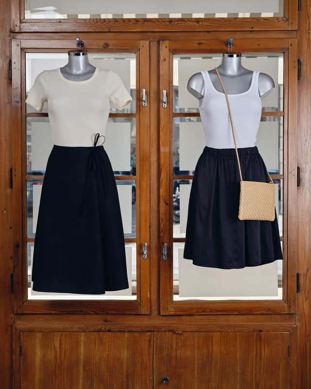 Langer Rock mit Wickelfalten und Bindebändern in schwarz, feinste Schweizer Baumwolle