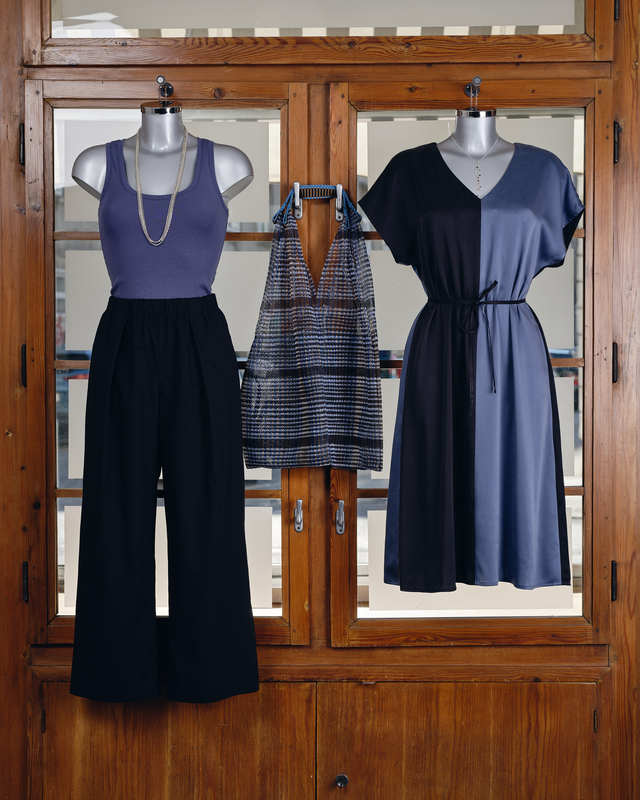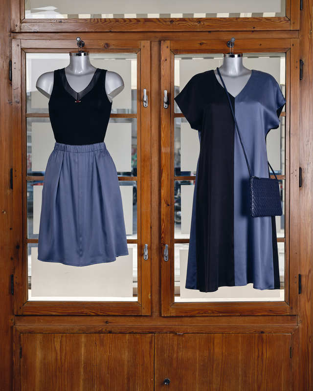 Seidenkleid aus Sandwashed Silk in schwarz & rauchblau